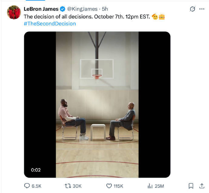 詹姆斯行将公布“第二次决定” 疑似公布退役时期