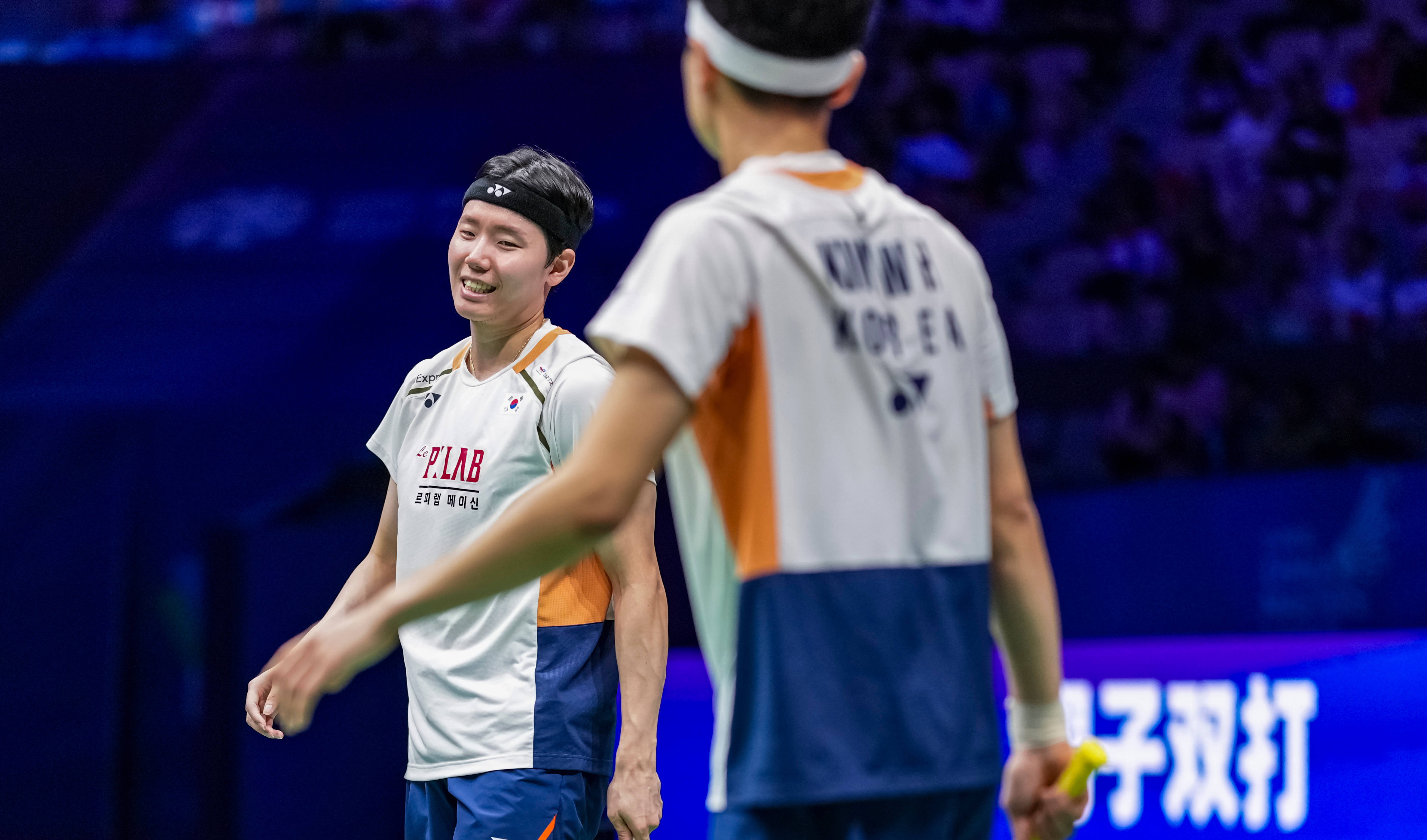 韩国选手徐承宰(左)在2025印尼羽毛球公开赛中。新华社记者 孙非 摄